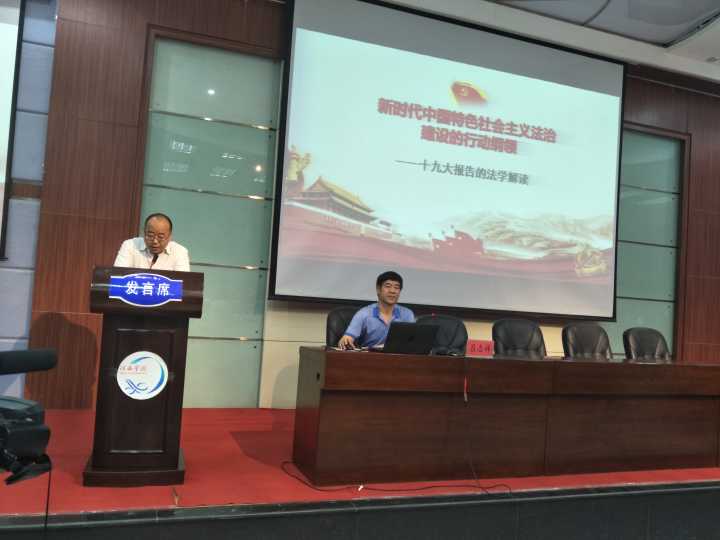 27日下午四点半,兰州理工大学天游线路测速登录中心院长吕志祥教授做了《新时代中国特色社会主义法治建设的行动纲领——十九大报告的法学解读》,该学术报首先从新时代中国特色社会主义法治建设的历史方位切入,列举了自十八大以来,党和国家所取得的经济、军事、国防、立法等方面的成就,表明“社会矛盾发生转化是我国进入新时代的基本依据”。然后,吕院长又讲到新时代中国特色社会主义法制建设的思想理论基础,向与会师生系统地阐述了习近平新时代中国特色社会主义思想的内涵及十四条基本方略。其次,对新时代中国特色社会主义法制建设的战略构思与实践策略作了详细讲解,说明我国正向社会主义现代化强国迈进。最后,论述了新时代中国特色社会主义法治建设的制度完善,必须始终坚持党的领导、人民当家作主、依法治国有机统一,必须在法治原则之下深化机构改革和行政体制改革。讲座中吕志祥院长严谨的论证、渊博的知识、风趣的语言都给天游线路测速登录中心师生留下了深刻的印象。