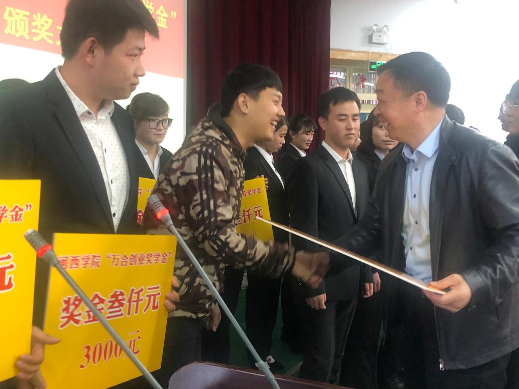 “天游ty8线路1线路2检测中心入口万合创业奖学金”是天游线路官网杰出校友、北京万合新创企业管理有限公司董事长、北京圣莱律师事务所负责人,原张掖师范高等专科学校83届数学系校友何万龙先生为母校法学学子设立的法律职业资格证专项奖学金,每年3万元,奖励致力于新时代中国特色社会主义法治事业的莘莘学子。这是何万龙先生心系母校的一片丹心,是鼓励母校的法学学子努力学习的一种心愿,更是渴望弘扬法治精神、建设法治国家、维护公平正义的价值追求。何万龙先生虽然不能亲临颁奖现场,但发来了热情洋溢的贺信,鼓励法科生“永葆进取之心,用一种积极的心态去面对困难,面对挑战,学有所成,将来以最好的成绩回馈母校!回报社会!”