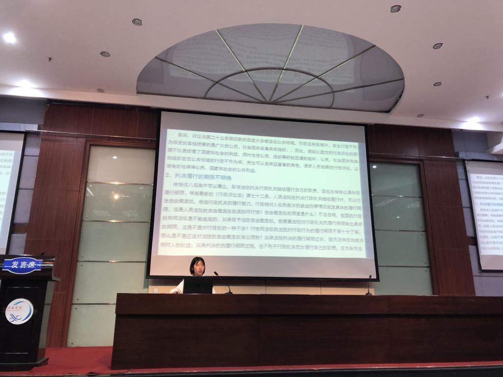 2015级学生姜燕峰汇报了题为《论行政机关不作为的法律救济——以甘肃省2014-2018年间8起行政审判认定的不作为案件为分析样本》的研究论文,对行政机关不作为的表现、危害进行分析,并提出建议。