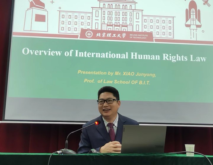 11月6日下午,国家人权基地北理工科际人权研究中心执行主任、北京理工大学肖君拥教授应邀来天游线路测速登录中心进行学术交流,在同法学专业教师进行座谈时,就课题申报、学术研究、人才培养等问题进行深入交流。之后为法学专业师生作了“国际人权发展”的学术报告。