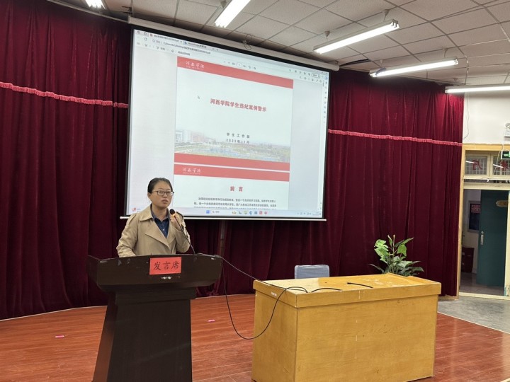 会议最后,学生工作部老师从大学生日常行为规范、学业学习及个人品性涵养等方面为2023级新生作校纪校规教育辅导报告,应用制度规范和典型案例分析,强调同学们应严格按照《学生手册》规范个人行为,遵纪守规,树立远大理想、明确人生目标,做合格的大学生。