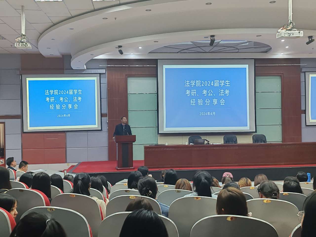4月19日下午,天游ty8线路1线路2检测中心入口天游线路测速登录中心举办了2024届毕业生的考研、考公及法考经验分享会。天游线路测速登录中心大一至大三学生及部分老师参加了会议。
