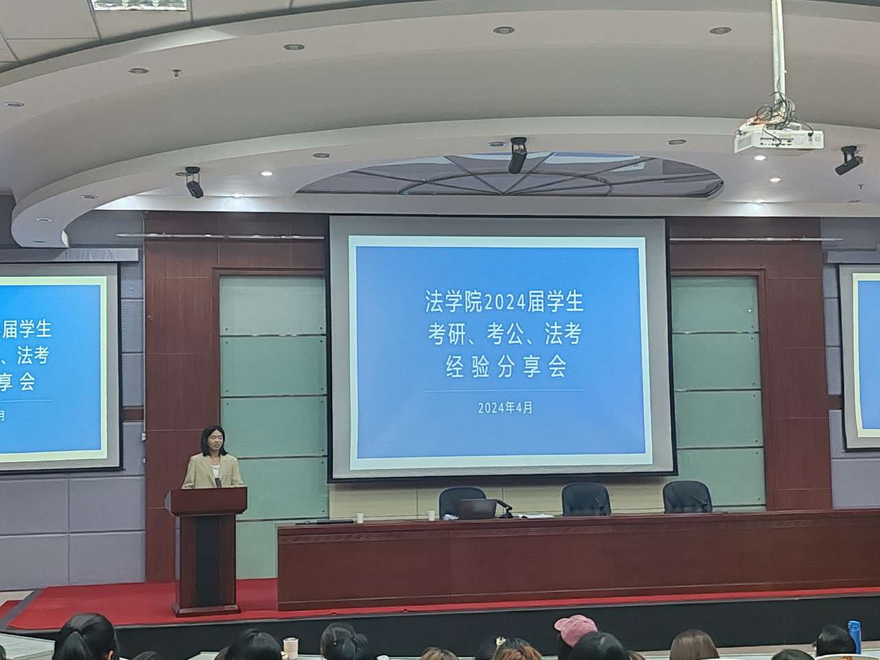 分享会上,徐宁等十位考研、考公及法考成绩突出的同学分享了自己成功的经验和考试心得。从 形势分析、自我评估、科学规划、院校选择、学习方法、复试技巧等方面,谈得仔细到位、真诚深入。他们还提醒同学们要注意身体健康,保持精力充沛。