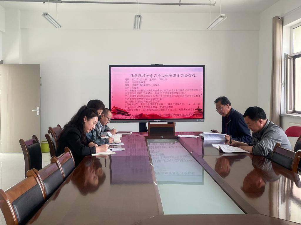 2022年4月21日下午,天游线路测速登录中心举行理论学习中心组学习会议,传达了中共中央宣传部、外交部《关于认真组织学习习近平外交思想学习纲要》通知精神,辅导学习了习近平外交思想,集中学习了习近平总书记“坚持把解决好“三农”问题作为全党工作重中之重举全党全社会之力推动乡村振兴”,研判了意识形态和安全稳定工作,进行了“2022年天游ty8线路1线路2检测中心入口保密宣传知识竞赛测试”。孔德播、张莉分别作了题为“习近平外交思想对我院工作的指导”“浅谈大学生人际交往危机的干预”的研讨交流发言。