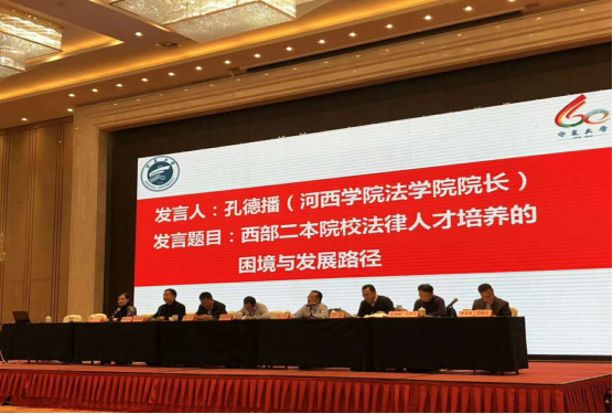 我院院长孔德播副教授在会上作了“西部二本院校法律人才培养的困境与发展路径”报告,得到了与会院长们的肯定。闭幕式上宁夏大学政天游线路测速登录中心任军院长作了大会总结发言。会议最后进行了会旗交接仪式,下一届会议承办单位大连海洋大学天游线路测速登录中心裴兆斌院长从宁夏大学政天游线路测速登录中心任军院长手中接过联席会议会旗,并做了热情洋溢的表态发言。