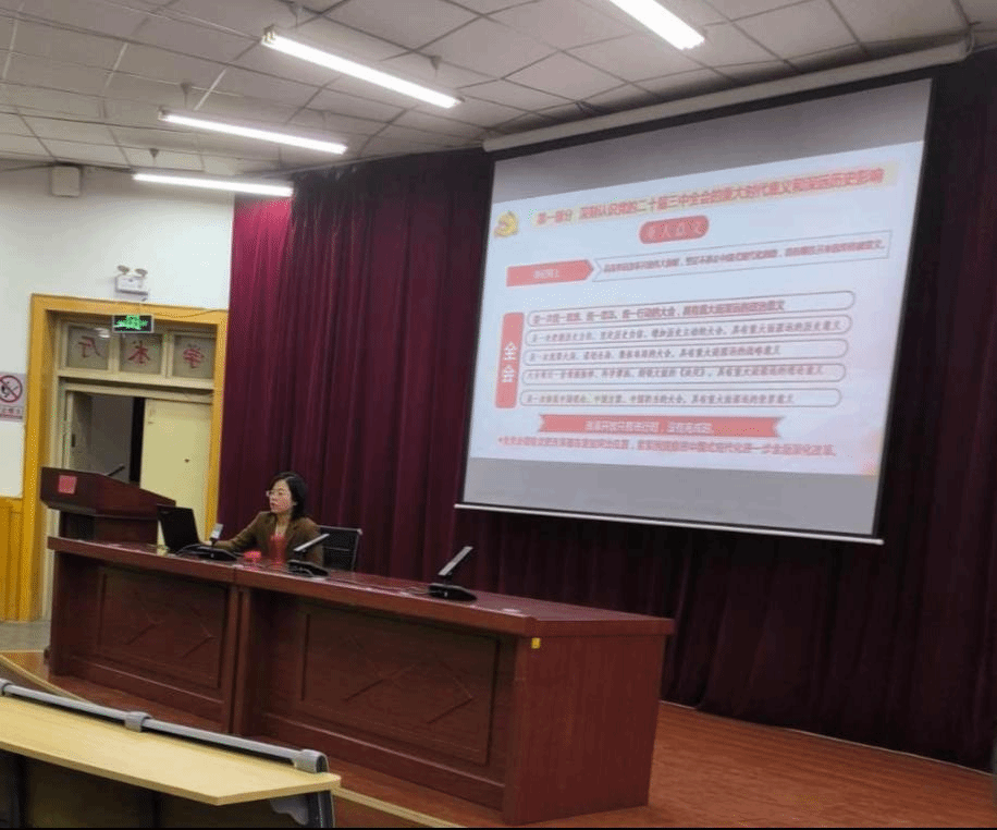 通过此次报告会,全院师生对党的二十届三中全会的基本内容、重大时代意义和深远历史影响有了更进一步的认识,全院师生将紧密团结在以习近平同志为核心的党中央周围,增强“四个意识”、坚定“四个自信”、做到“两个维护”,以钉钉子的精神,以本科教育教学审核评估为契机,将全会精神落到实处,为实现第二个百年奋斗目标、实现中华民族伟大复兴的中国梦而努力奋斗。