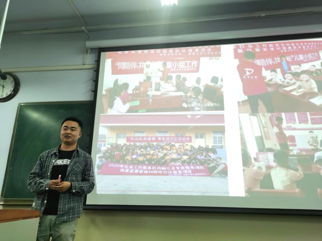2017级的8位学生代表从学校社工、养老社工、儿童福利等不同领域出发,分享了自己的实习经历。一个个生动的工作经历、丰富的影像资料,使参会学生更加立体的了解了专业实习的基本内容。随后,丁元老师就本次实习周期安排、实习内容以及管理要求、注意事项等工作,做了具体详尽的介绍,为同学们踏入实习岗位做好准备。